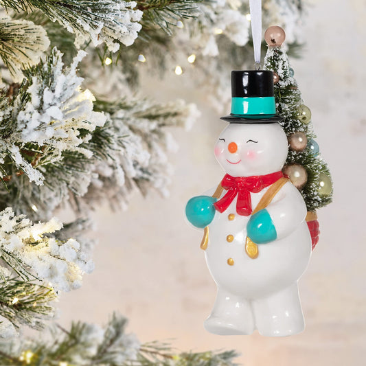 Hallmark Keepsake Christmas Ornament 2021, Vintage Snowman with Tree, Porcelain