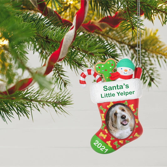 Hallmark Keepsake Christmas Ornament, Year Dated 2021, Santa's Little Yelper Dog Stocking Photo Frame