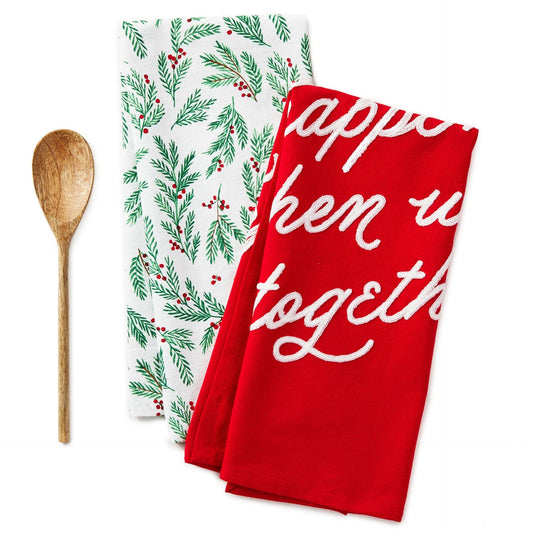 Hallmark Christmas Tea Towels and Wooden Spoon, Set of 3
