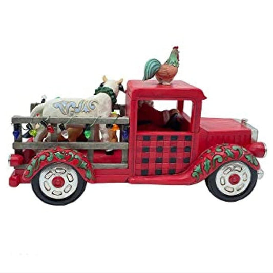 Jim Shore Country Christmas Cargo Santa Driving Red Plaid Farmhouse Truck Figurine