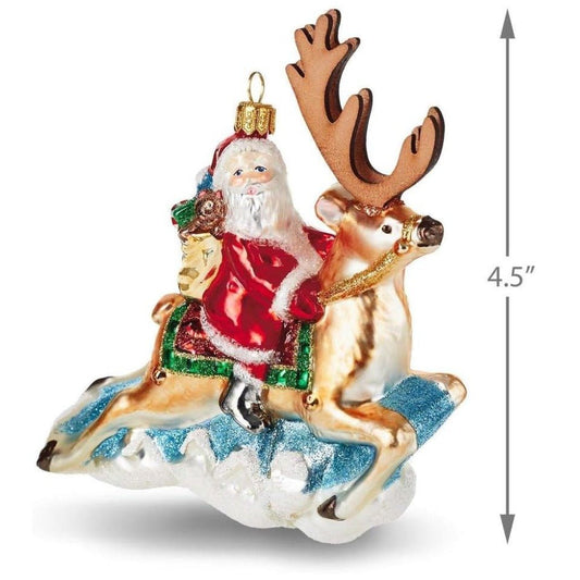 Folk Art Santa on Reindeer Blown Glass Ornament