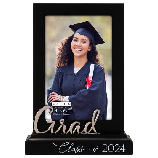 Grad Class of 2024 Platform Picture Frame with Metal Word Attachment Holds 4"x6" Photo