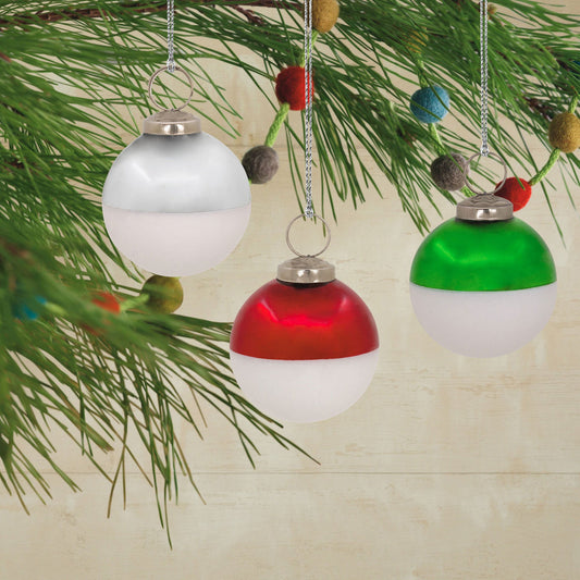 Red, Green and Silver Ball Glass Hallmark Ornament, Set of 6
