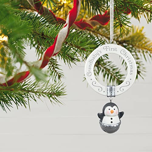 Hallmark Keepsake Christmas Ornament 2022 Year-Dated, Grandbaby's First Christmas Penguin Bell, Porcelain