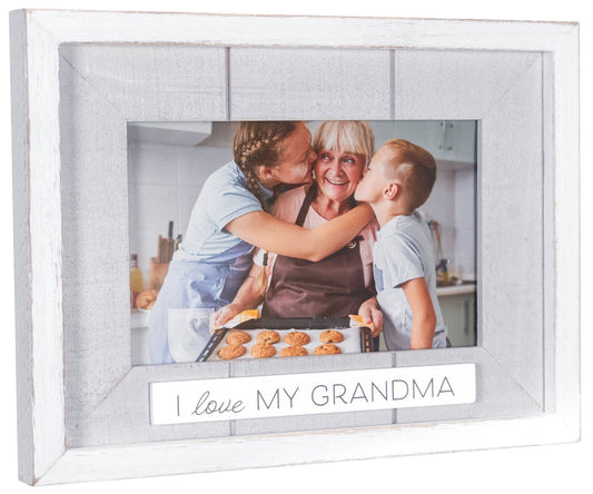 I Love My Grandma Rustic Matted Picture Frame with Plaque Attachment Holds 4"x6" Photo