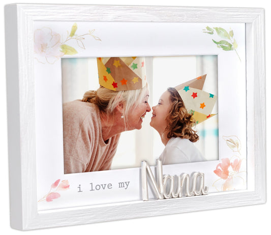 I Love My Nana Floral Matted Rustic Wood Picture Frame with Metal Word Attachment Holds 4"x6" Photo