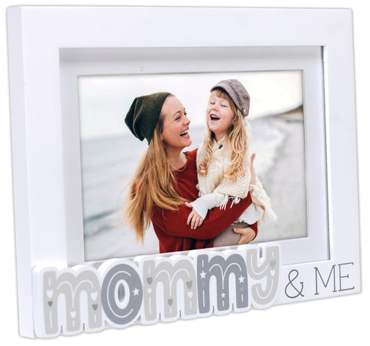 Mommy & Me White Matted Picture Frame with Word Attachment Holds 4"x6" Photo