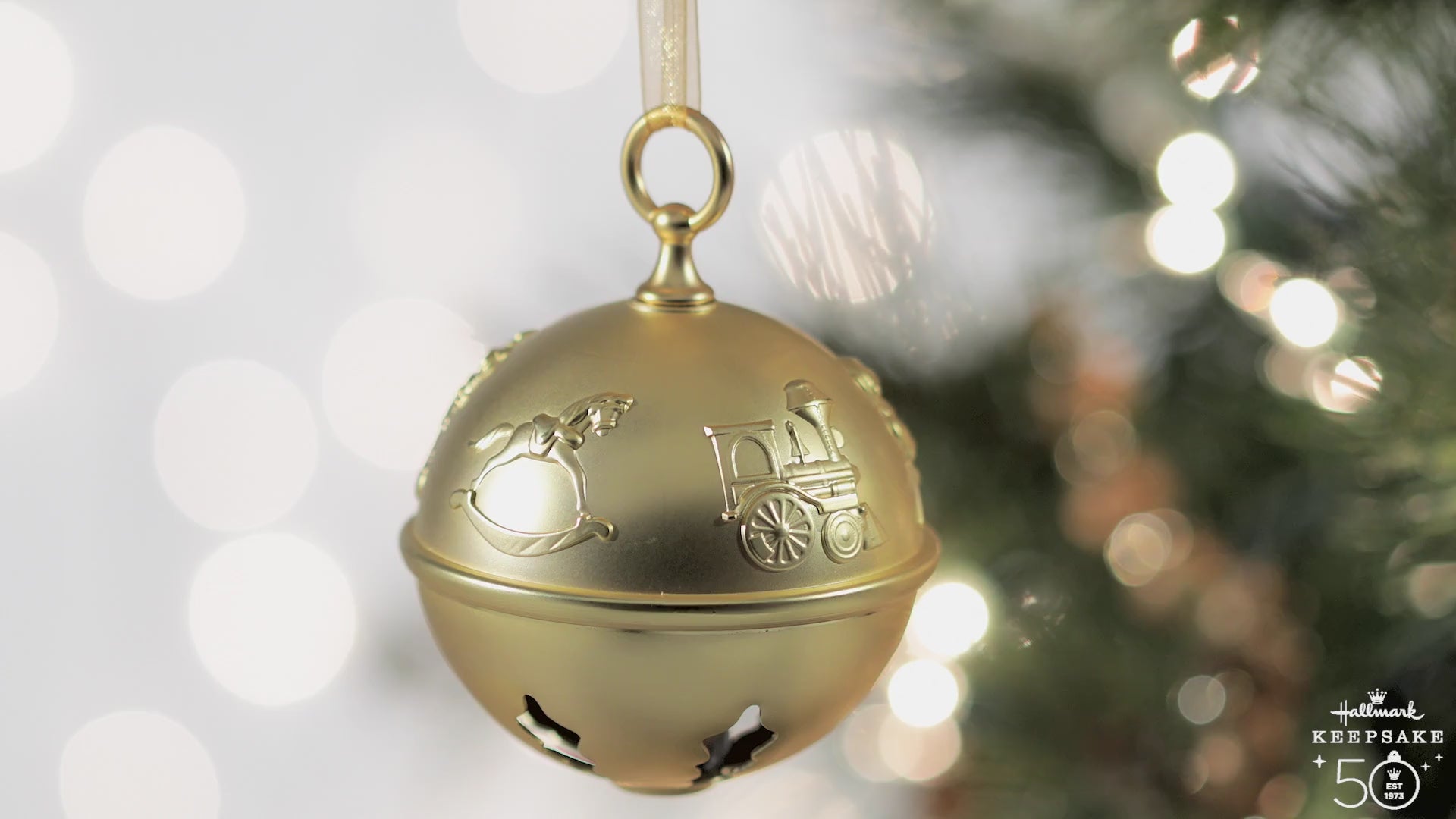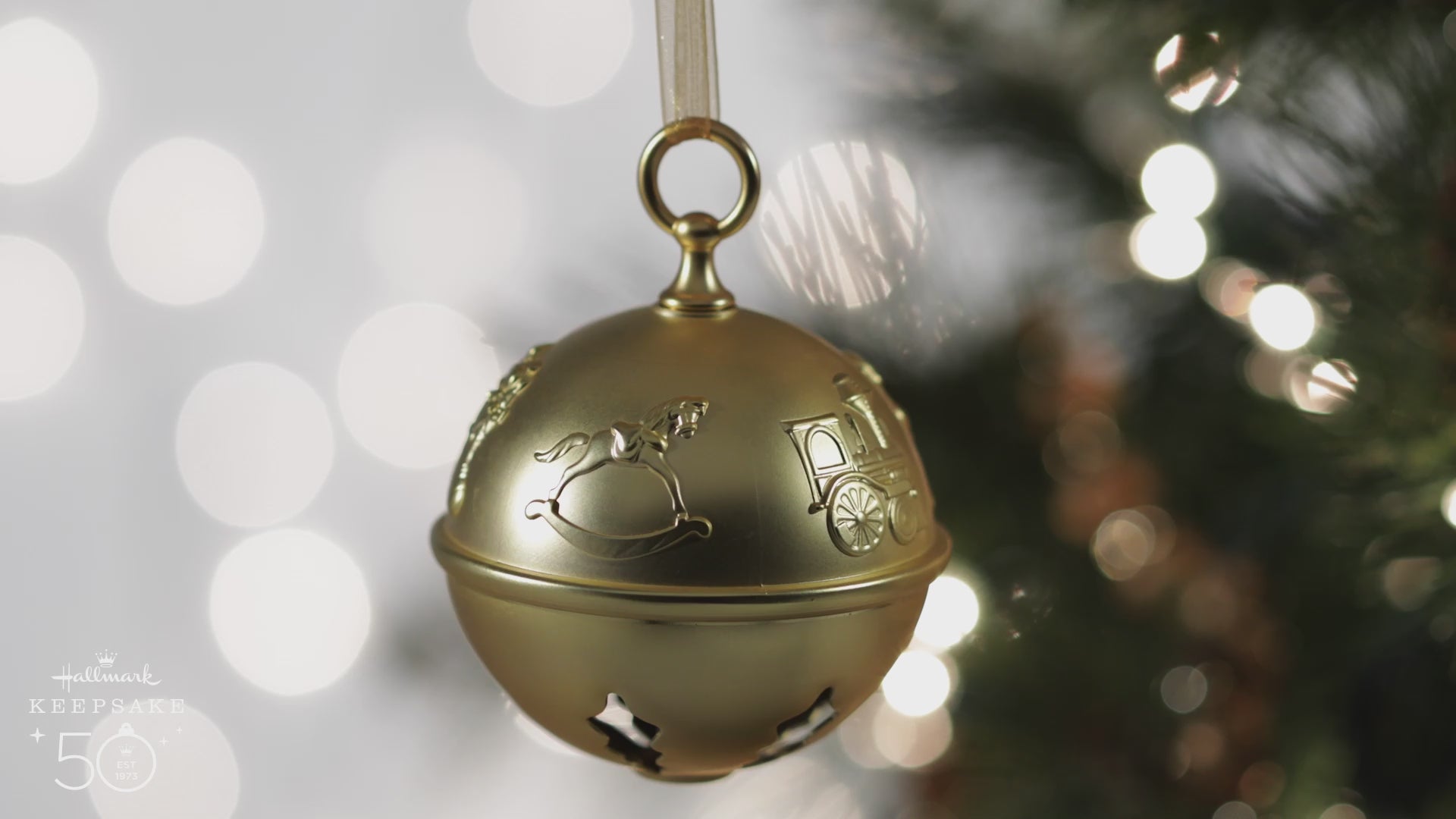 Celebrate 50 years of Hallmark Keepsake Ornaments and add extra jingle to the holiday season with this beautiful complement to your Ring In the Season collection. The matte-gold, premium metal jingle bell Christmas tree ornament features embossed designs representing Keepsake Ornaments through the years, with a heartwarming ring when you jingle it. Coordinating 9th in series sold separately.