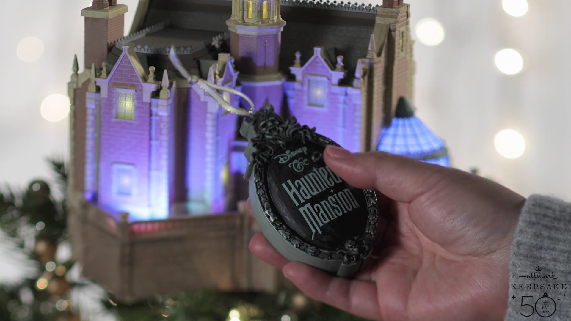 - Key Features: Connect the Storytellers Interactive Light and Sound Christmas tree topper to the power adapter (included) to see the continuous light effect. Press the button on the remote control to watch the tree topper illuminate and hear music and sound from "Grim Grinning Ghosts" from the Disney Parks attraction, The Haunted Mansion. Add other Disney The Haunted Mansion Collection ornaments to experience even more of the iconic attraction.