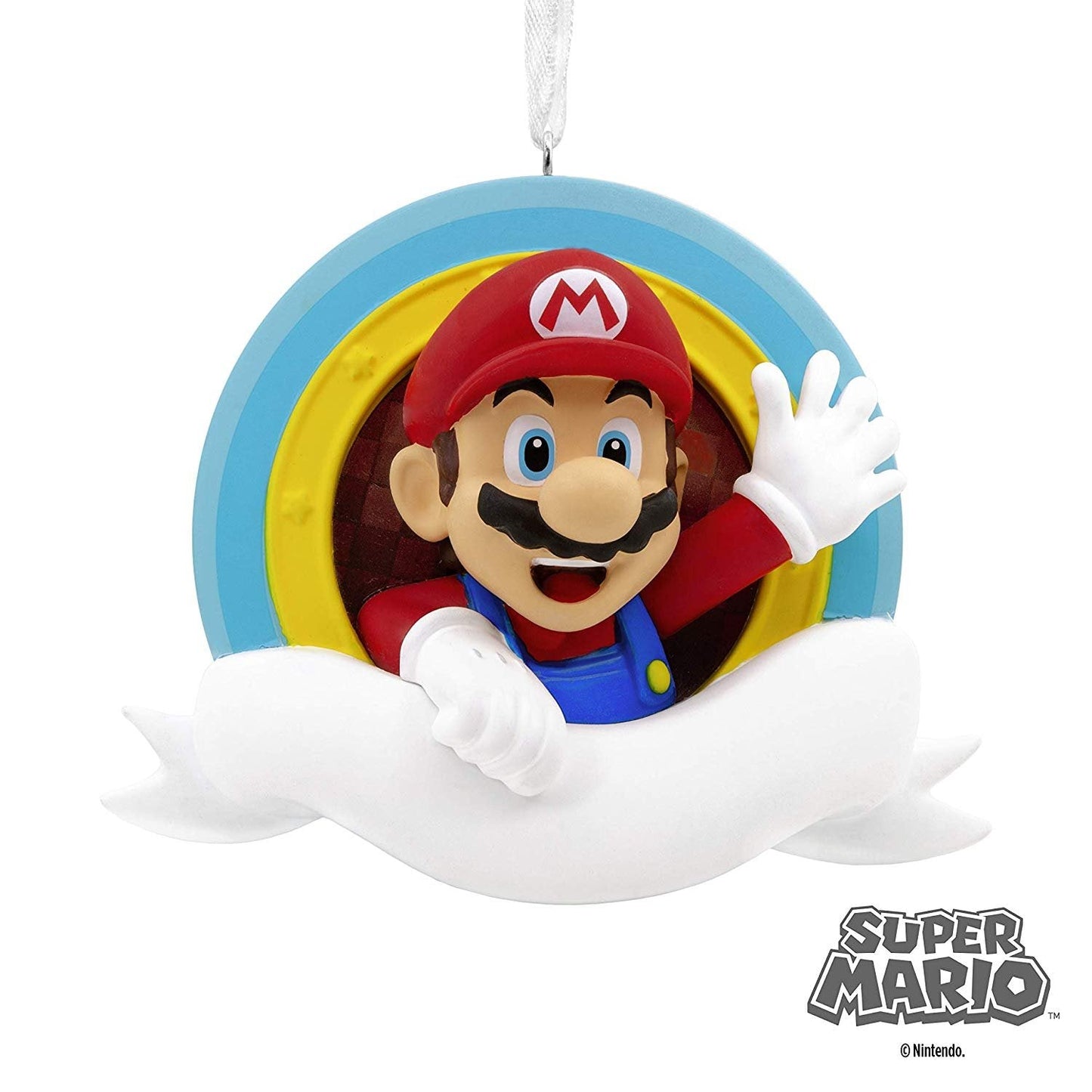 - Power up with this Christmas ornament featuring the star of Nintendo's "Mario Bros." video games. Includes space to customize when you write in a name or date with a thin marker (not included).